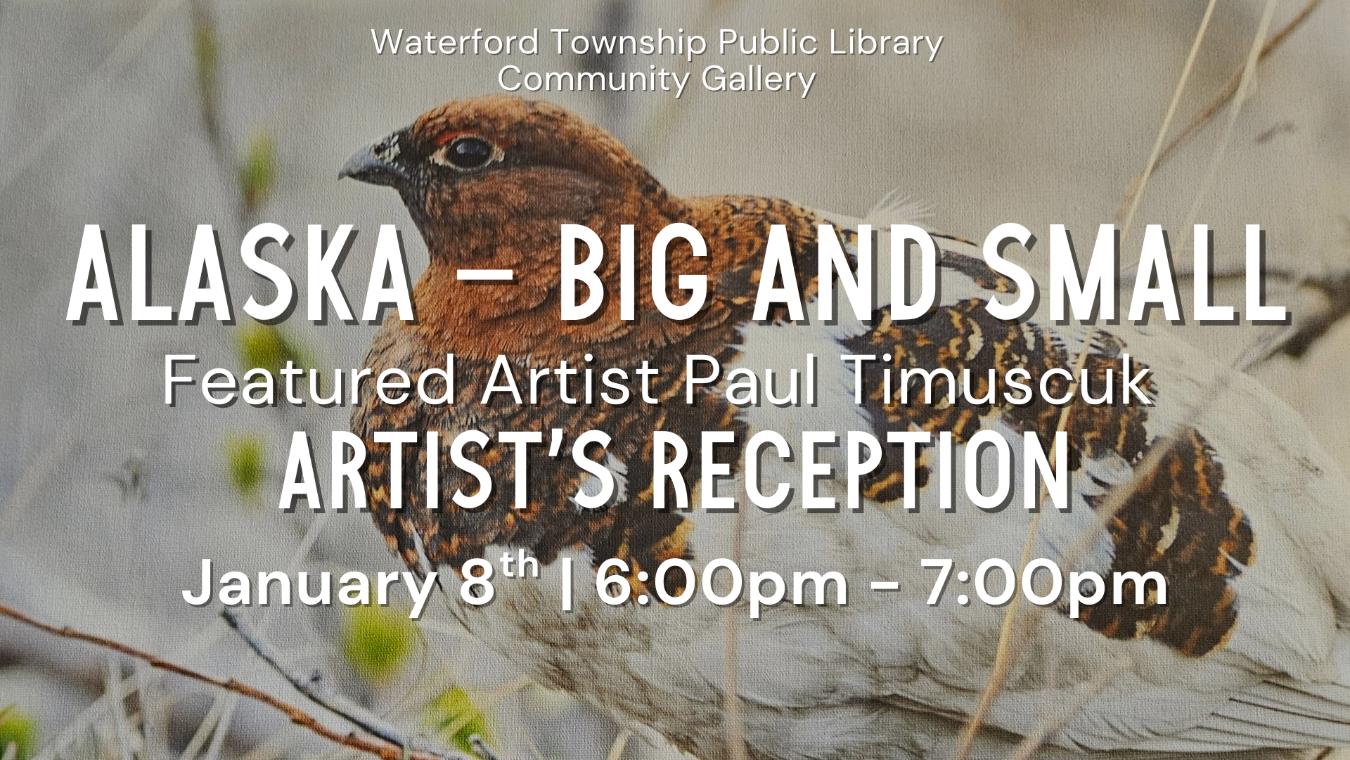 Join us for reception to celebrate the beautiful photographic work of Paul Timuscuk. Enjoy light refreshments and meet the artist Alaska – Big and Small…