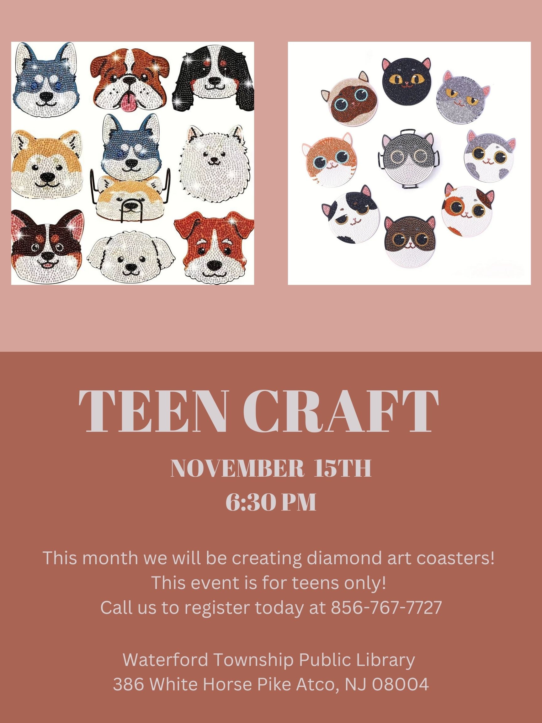 This month we will be making sugar skull Barbies! This event is for teens only! Call us to register today at 856-767-7727