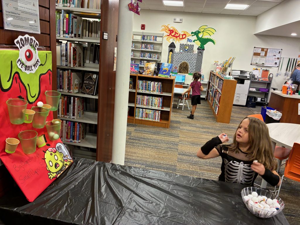 We had over 100 patrons come to join us for our annual family Halloween bash! It was a slightly spooky, but mostly just FUN night! A big thank you to all the families who came out to enjoy the night with us. Crafts, games, and of course CANDY were enjoyed by all.
